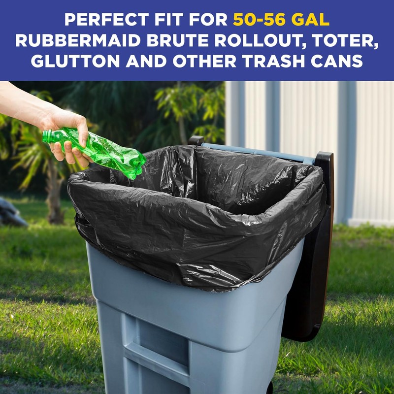 (25 Pack) 55-60 Gallon Trash Bags, 2 Mil Heavy Duty, Fits Rubbermaid Brute Rollout, Round Square 32-55 gal Trash Cans, 43" x 47" Large Durable Garbage Trash Can Liners, Bulk (2 Mil Black | 25 of Pack)