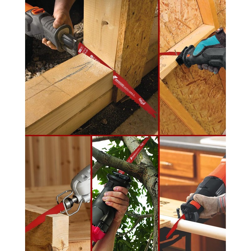 - Multifunctional:6 inch 6/12 TPI reciprocating saw blades provide superior cutting performance at both wood and nail-embedded wood, when we trim wood containing nails such as abandoned fences, no longer have to worry about nail damage to the saw blade or frequently replace different kinds of reciprocating saw blades, solving the reality we often encounter.