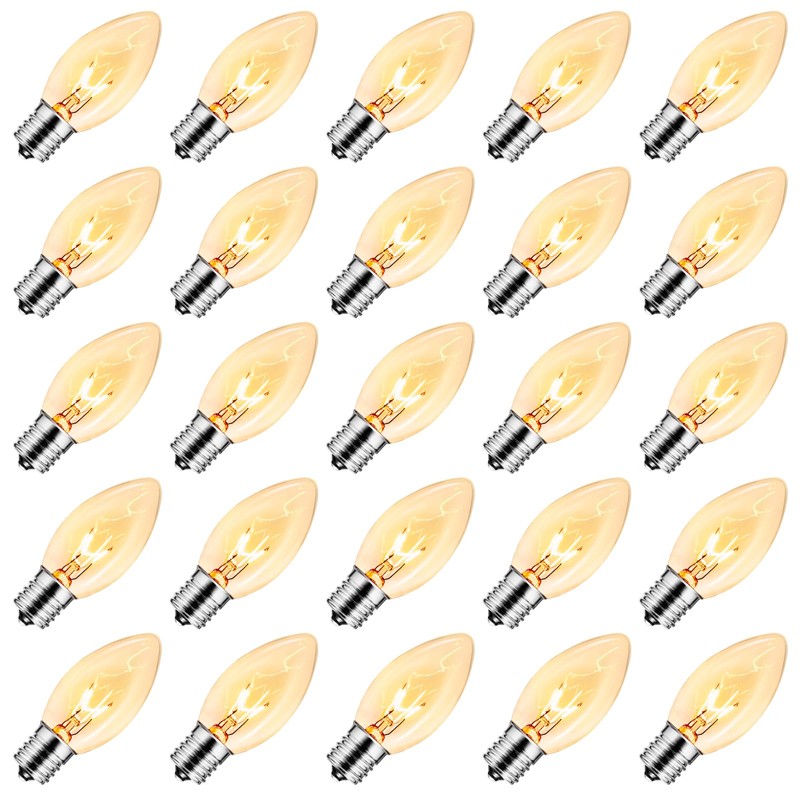 - 25Pack C9 Light Bulbs: C9 clear replacement bulbs, 25 pieces