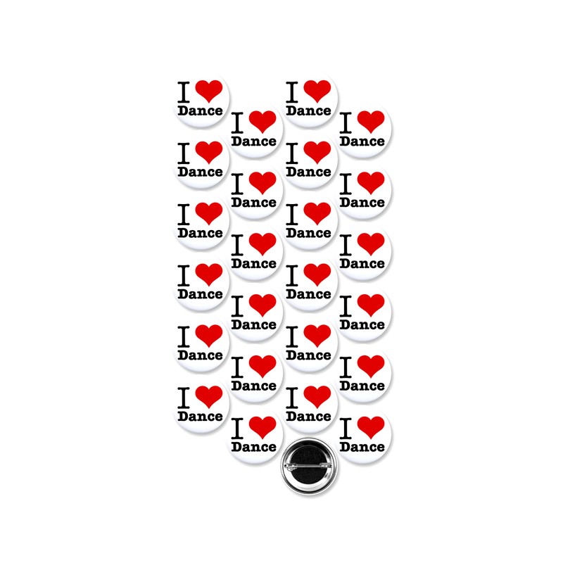 25 Pack - I "Heart" Love Dance Pinback Button Badges - 1.5 Inch