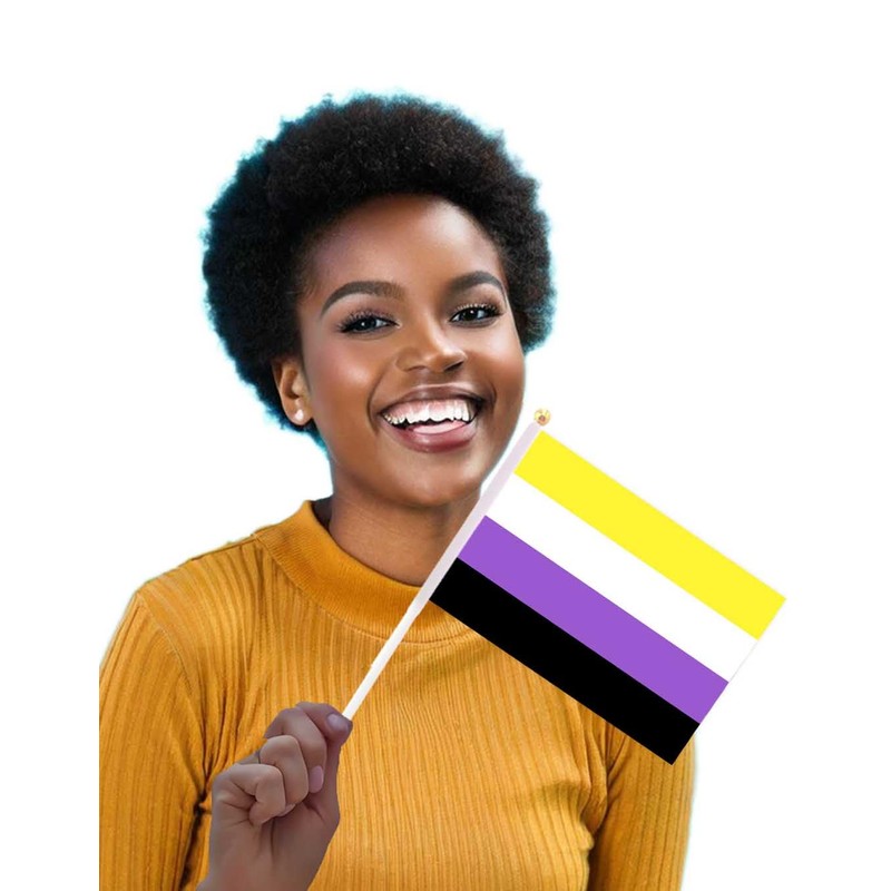 25 Packs Small Non-binary Flags on Handheld Stick,Miniature Non binary Flag for Outside,4x6 Inch Mini Hand Held Banner with Golden Topper,Patriotic Decorations