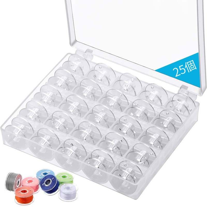 - Size: 1. 25 bobbin: 0.8 x 0.4 inches (2.03 x 1.14 cm); 2. 1 storage box: 4.7 x 3.9 x 1.0 inches (12 x 10 x 2.5 cm)