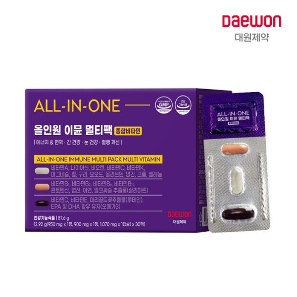 25종 올인원 이뮨 멀티팩 종합비타민 (밀크씨슬+루테인+알티지 rTG 오메가3) 1박스 30팩 / 멀티비타민