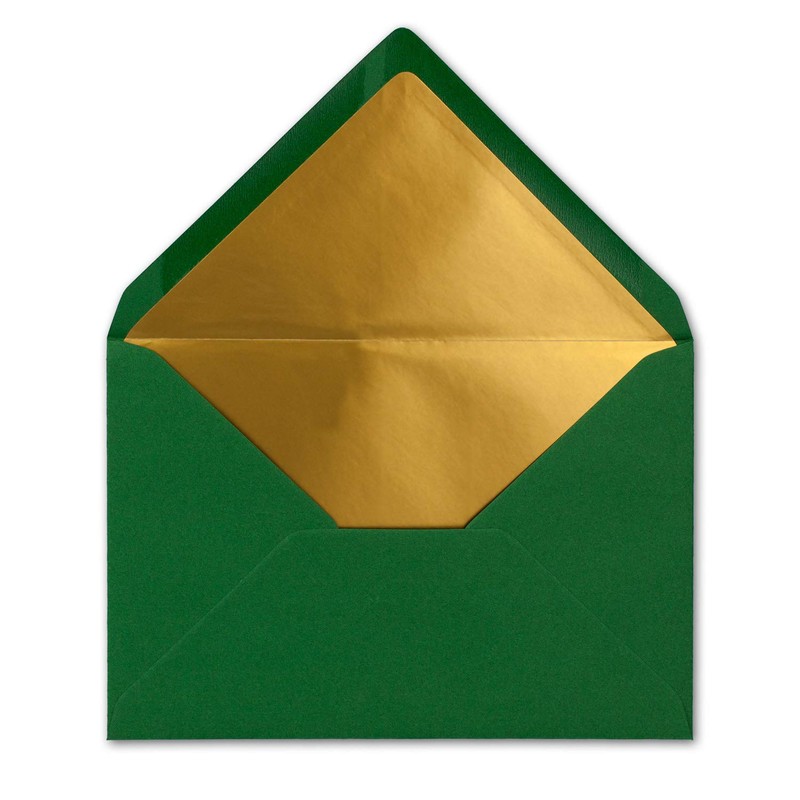 25 x B6 envelopes with gold inner lining, 12.5 x 17.6 cm, dark green, (green), wet seal, FarbenFroh by Gustav Neuser