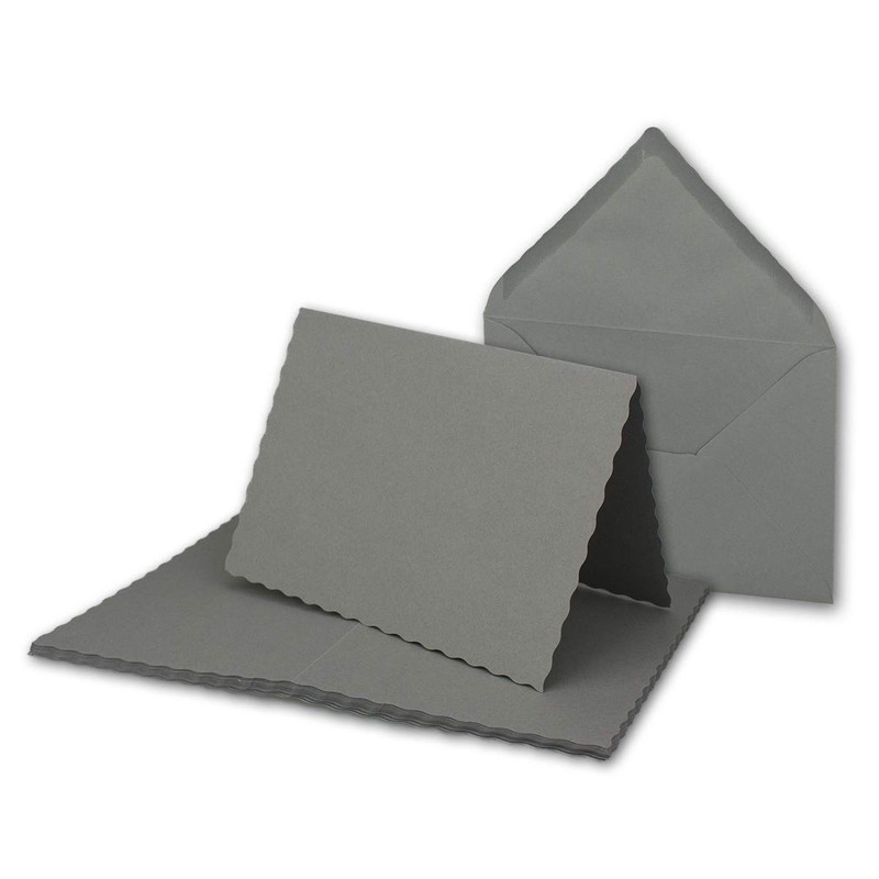 25 x Folding Card Set DIN A6 with DIN C6 Envelopes - Wavy Die Cut Edge - Graphite Grey/Dark Grey - 10.5 x 14.8 cm - Wave Cut Card Sets - FarbenFroh by GUSTAV NEUSER