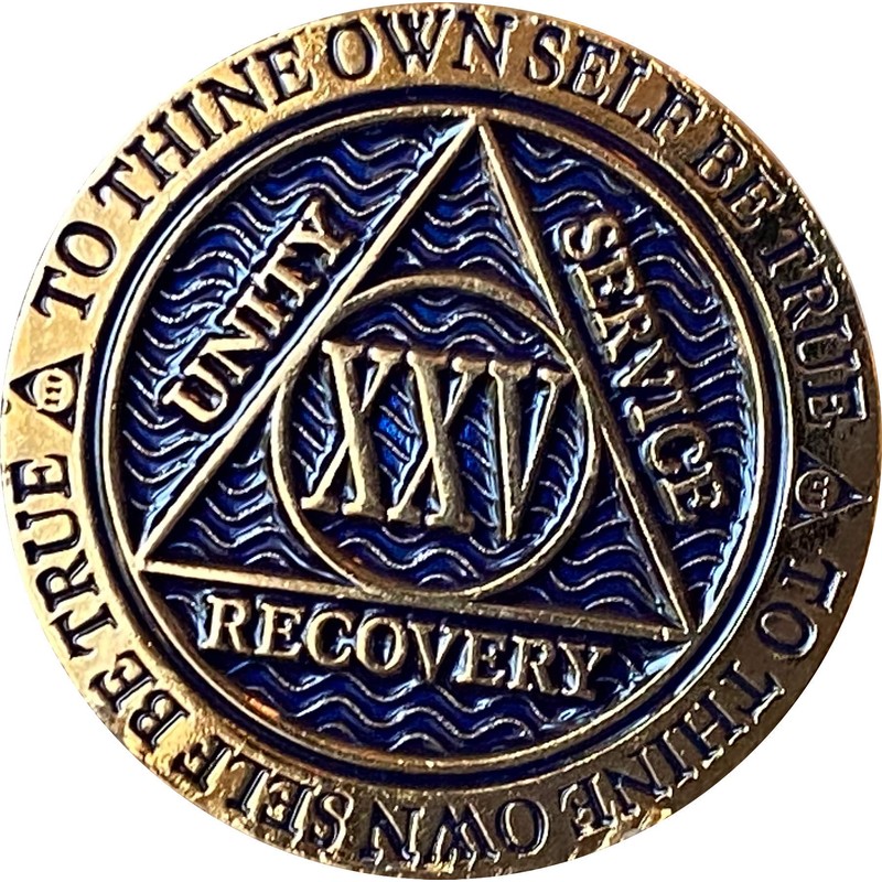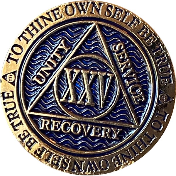 25 Year AA Medallion Dusty Blue Color Gold Plated Chip XXV
