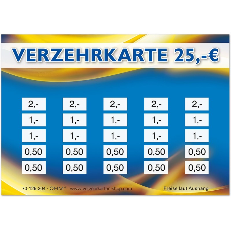 250 consumption cards DIN A7, total value 25 euros, practical alternative to tokens, for clubs, catering etc., easy cashless payment