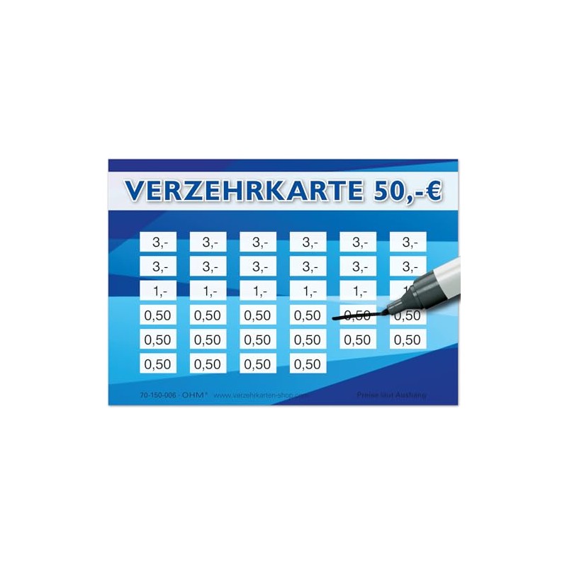 250 consumption cards DIN A7, total value 50 euros, practical alternative to tokens, for clubs, catering etc., easy cashless payment