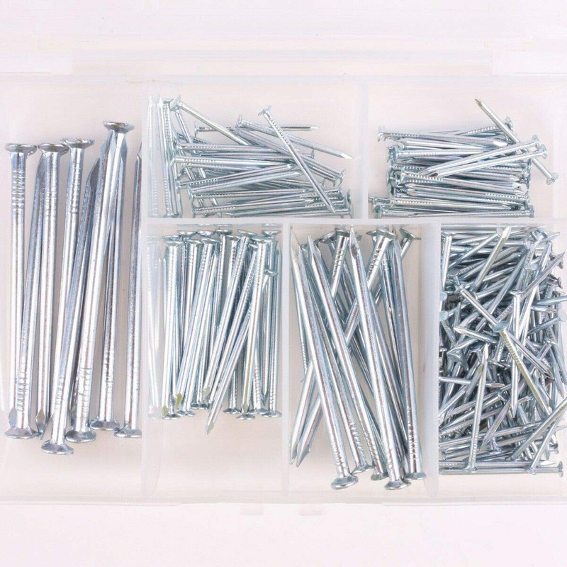 250 Pcs DIY ZIN Plated Steel Wood Carpentry Home Work Assorted Flat Head Nails