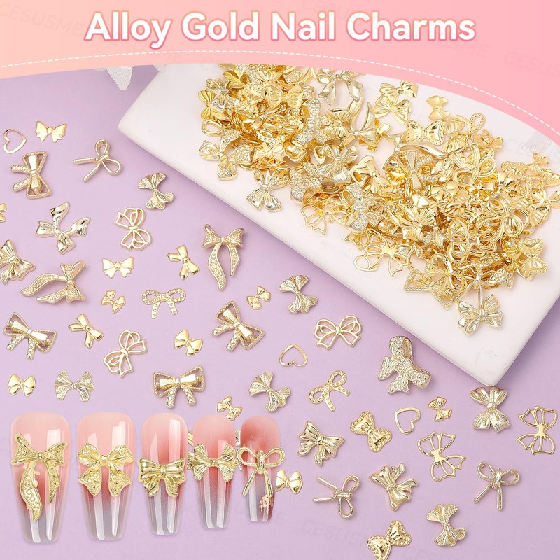 - Premium Quality: These luxury cute bowkont nail gems charms are made of reliable quality alloy, which have bright gold color and are well made with long-lasting brightness and hard to break and fade