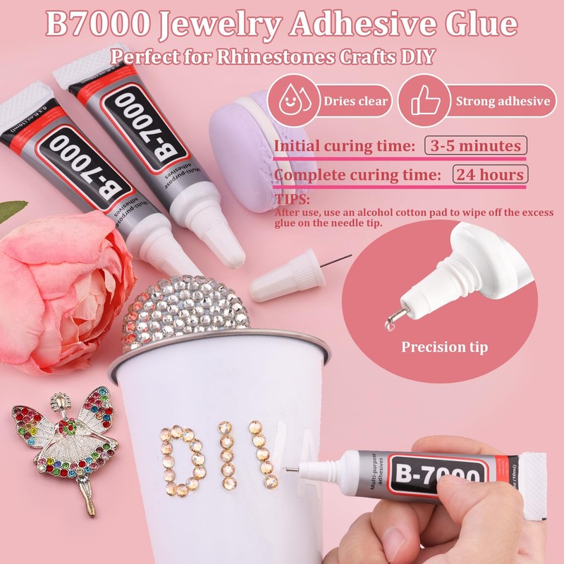 - 💎STRONG B7000 GLUE FOR GEMS -- These Non-Hotfix rhinestones are not self-adhesive and need to be used by glue. The equipped B7000 glue has strong adhesion and dries clear. It has a precision needle for easy application. For first use, you can leave the glue head up for a few minutes before opening to avoid overflow. After use, the needle needs to be cleaned with an alcohol wipe so as to avoid a mess.
