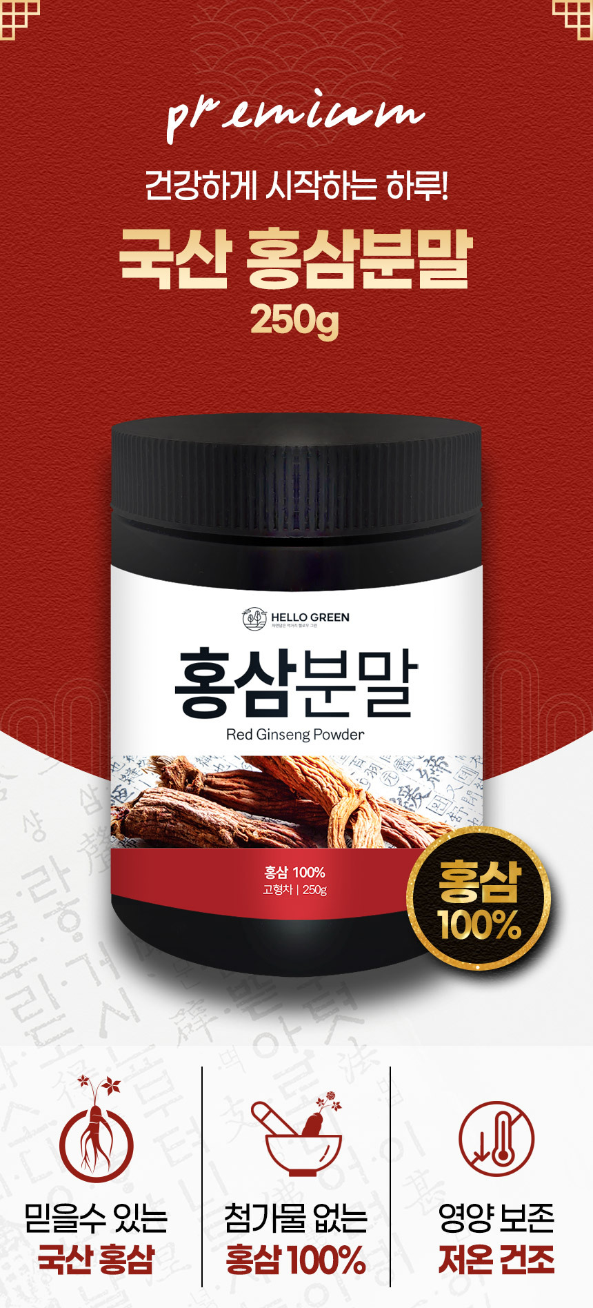 (헬로우 그린)헬로우그린 국산 홍삼 분말 가루 250g(통)