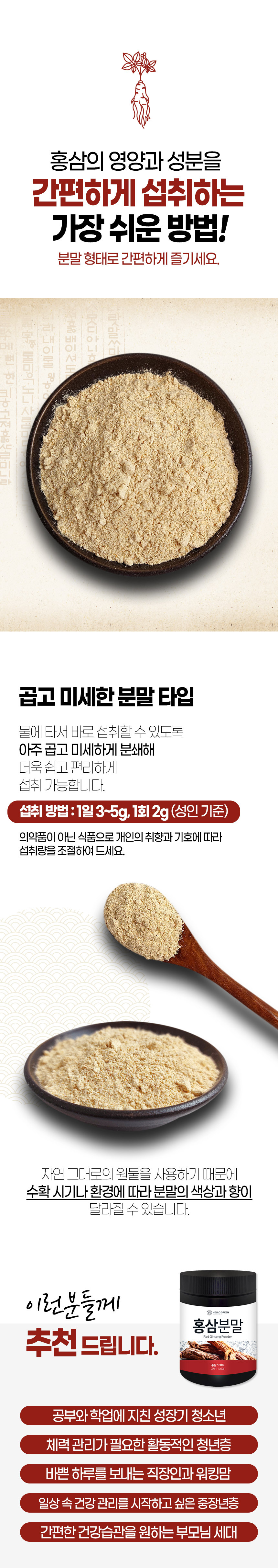 (헬로우 그린)헬로우그린 국산 홍삼 분말 가루 250g(통) Hello Green Korean Red Ginseng Powder 250g (Container)