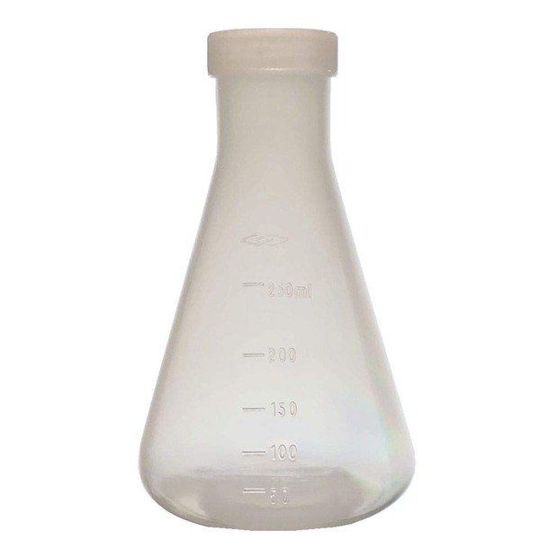 250ml Plastic Erlenmeyer Flask with Screw Cap, Polypropylene, Molded Graduations, Karter Scientific (Single)