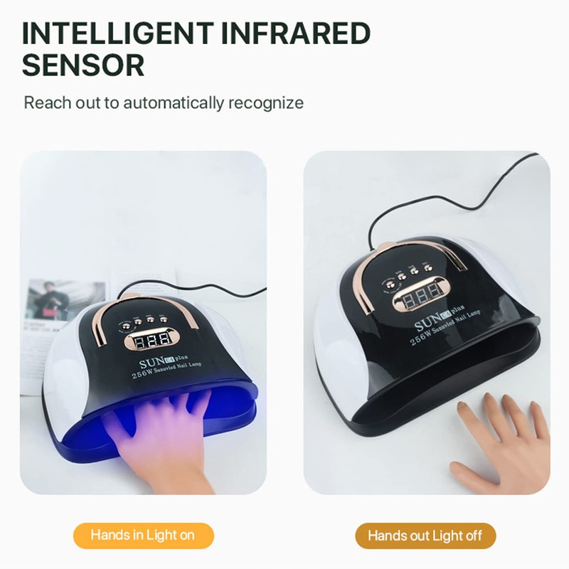 - 【Secado rápido】: la lámpara de uñas de 256 W adoptó un diseño de 57 chips de luz, con alta eficiencia y ahorro de energía, que puede secar rápidamente el esmalte de gel para uñas.