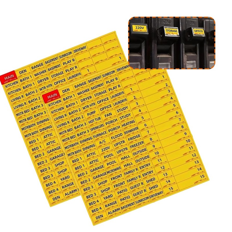 Includes 258 pre-printed yellow circuit breaker labels to clearly mark switches for breakers, fuses, and electrical panels, eliminating guesswork in home or office wiring management.