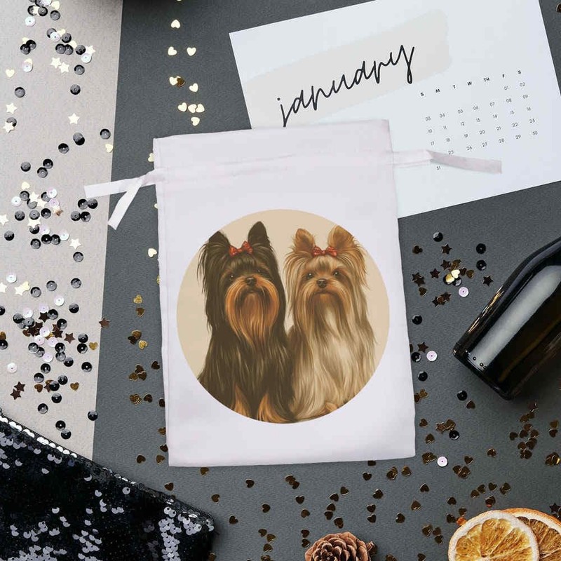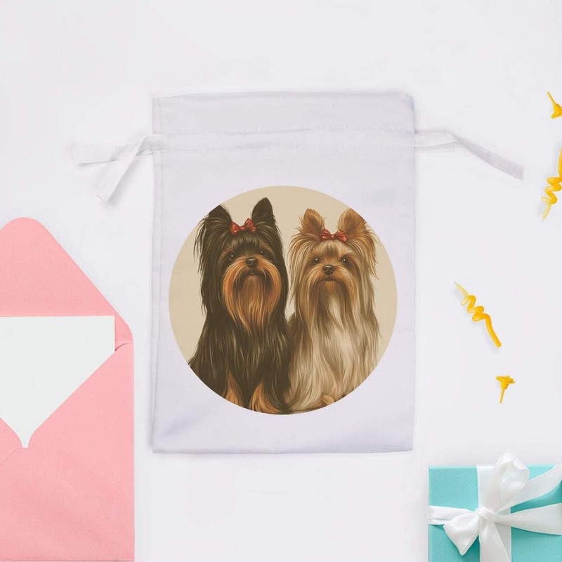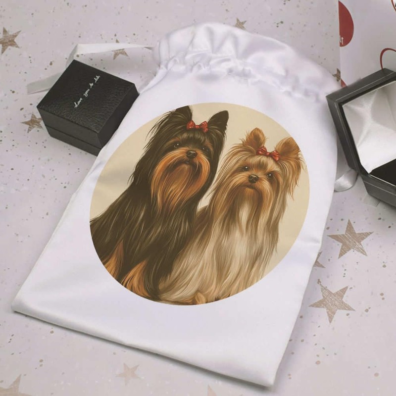 25cm 'Two Yorkshire Terriers Portrait' Satin Drawstring Bag/Pouch (SB00115660)