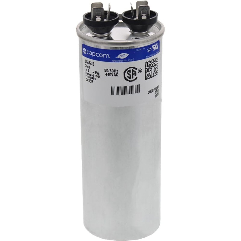 25L502 35 uf MFD 440 Volt VAC - GE Genteq Replacement Round Run Capacitor by CAPCOM