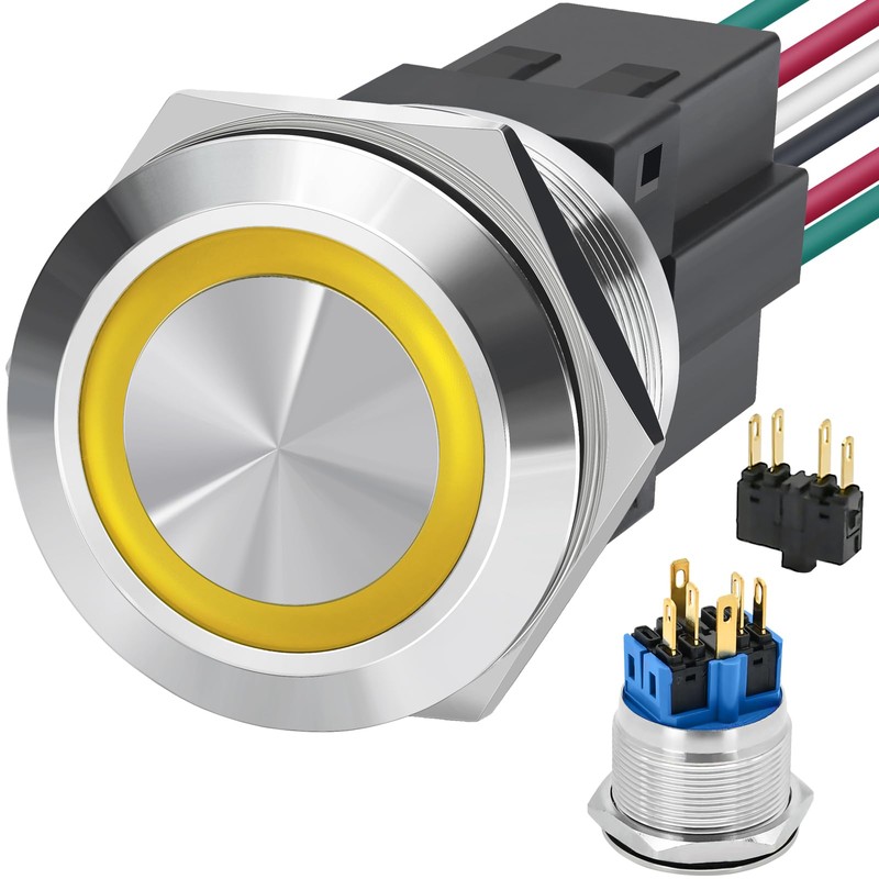 - ✅【Yellow LED】Red LED lamp voltage: 24V DC/AC. LED light life: 40000 hours. Using AC/DC LED lamp, the terminals have no difference of anode and cathode. Button mechanical life: 1,000,000 cycles.
