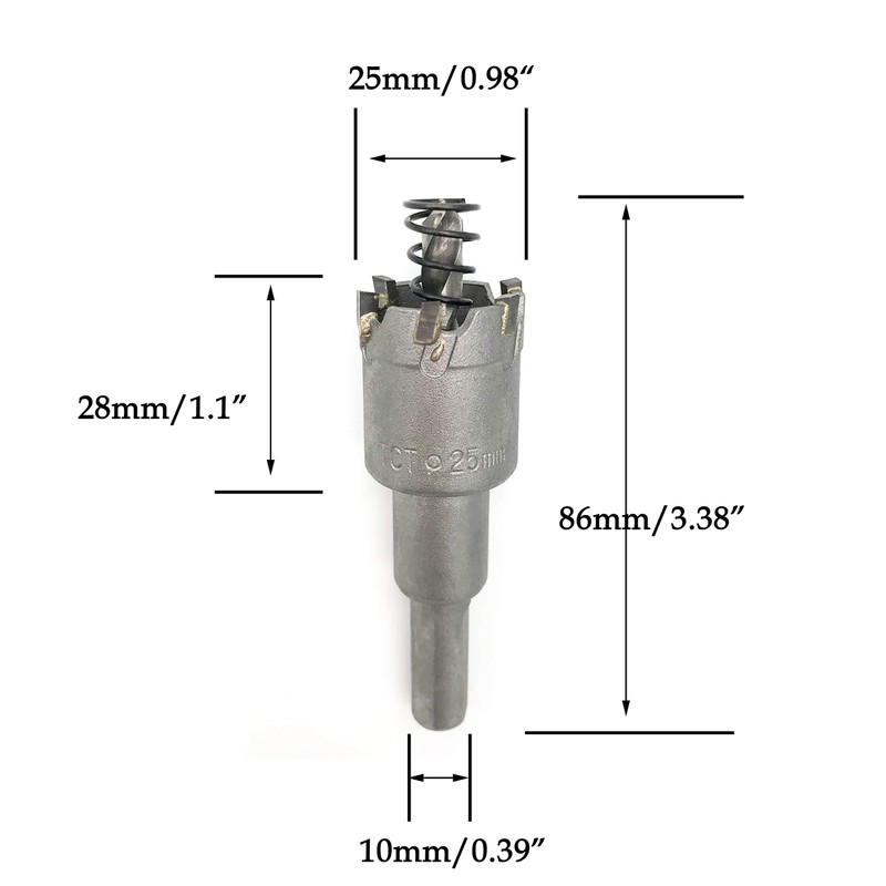 - ❶SIZE: 25mm(1”) hole saw diameter, 86mm(3.38”) length, 10mm(0.39”) shank.