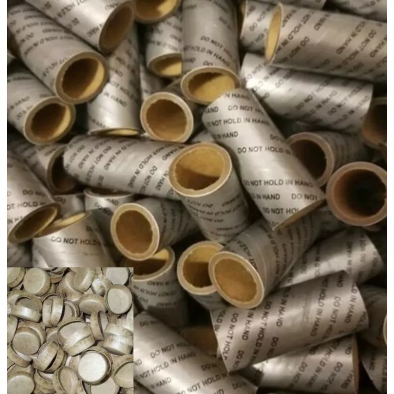 25pc 1" x 2.5" silver print firework kraft tube with paper caps