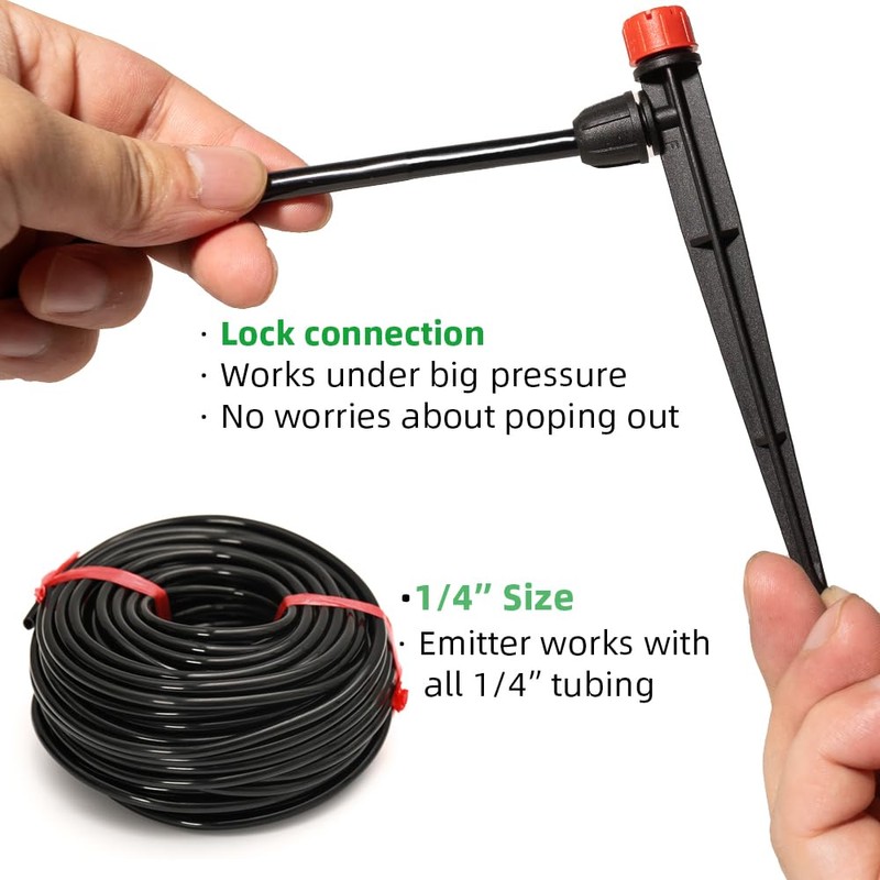 - Compatible with ALL Irrigation Tubes: emitters are compatiable with all 1/4" tubings from all brands, you can connect them directed to your irrigation system.