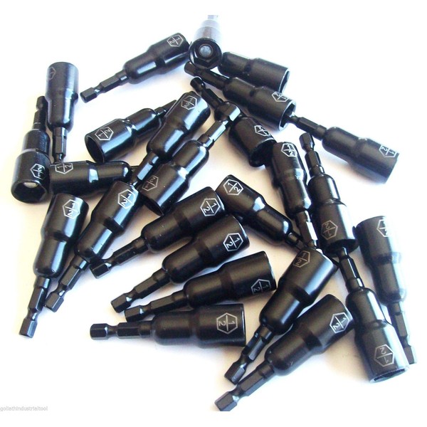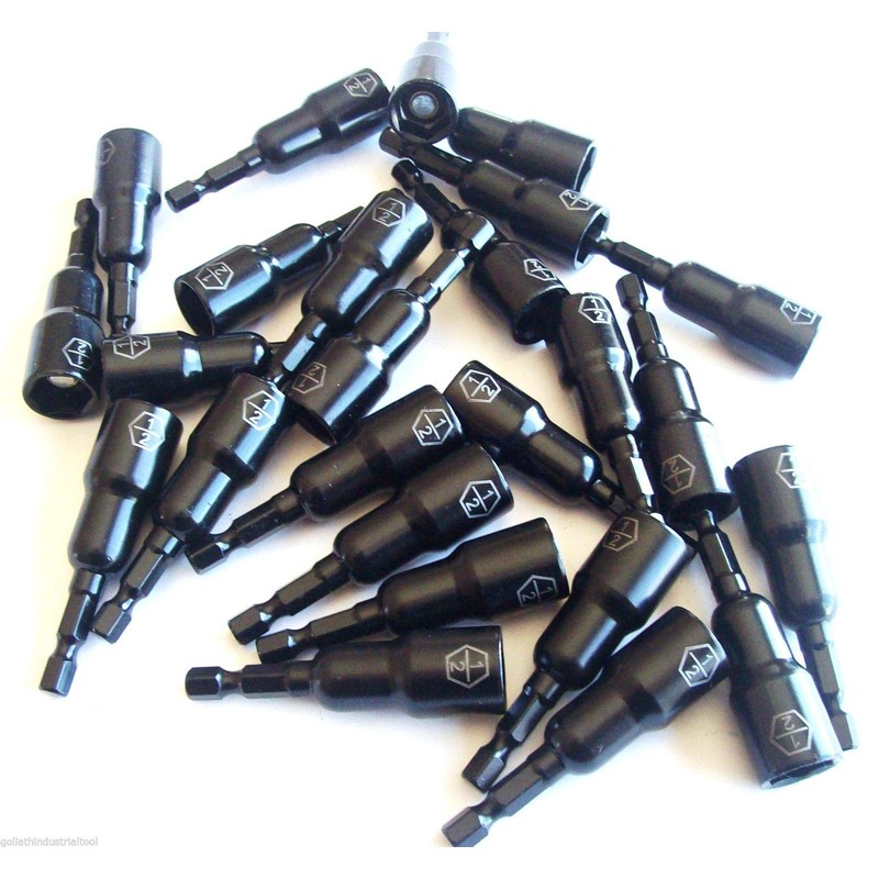 25pc LASER ETCHED SIZE ~ 1/2" ~ IMPACT MAGNETIC NUT SETTERS 2-9/16" LONG NUTSETTER DRIVER 1/4" HEX SHANK