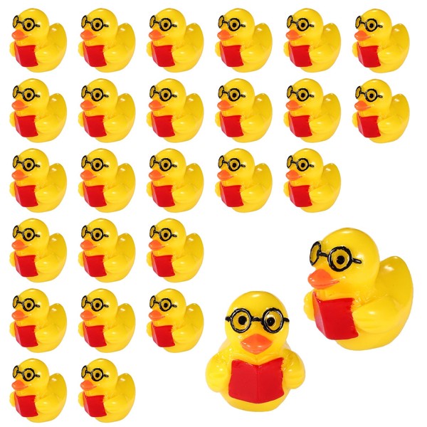 25pcs Back to School Resin Ducks, Mini Tiny Little School Theme Miniature Duck Small Resin Animal for DIY Dollhouse Garden Bonsai Micro Landscape(Book Style)