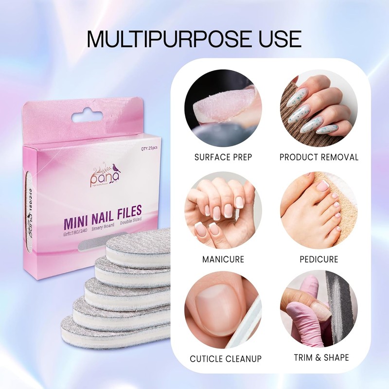 - [Uses] These nail files are ideal for shaping and smoothing natural and acrylic nails. The effective grit allows for quick reduction of length and thickness, while also refining edges with precision.