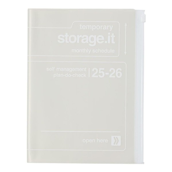 25SDR-H02-WH 2025 Planner Schedule Book, Starting March 2025, Monthly Block, A5 Size, Storage It, White, Marks