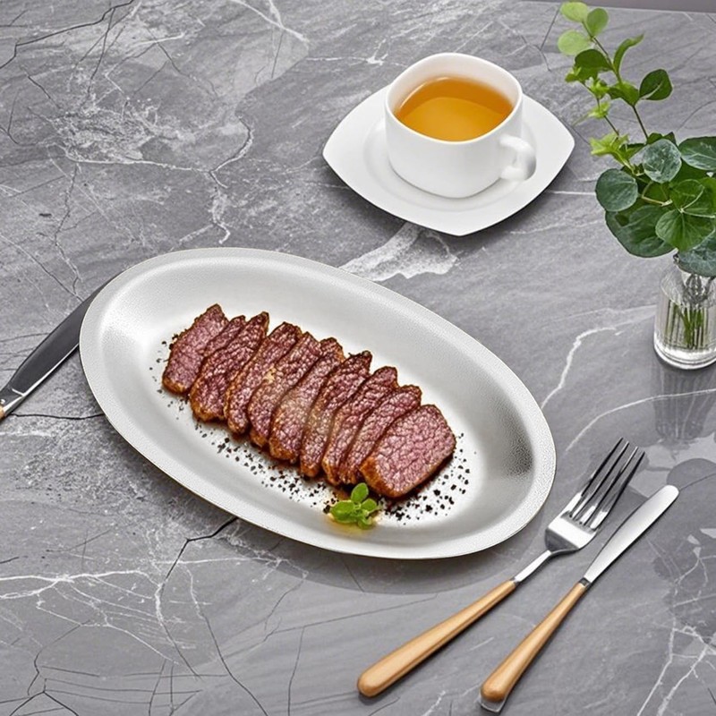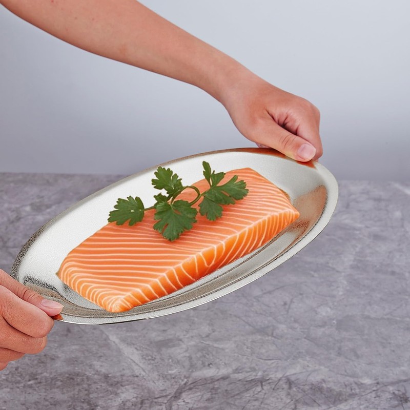 25X15 cm Thick Stainless Steel Dinner Plate 2-Piece Set, Egg-Shaped Appetizer Plate,Silver