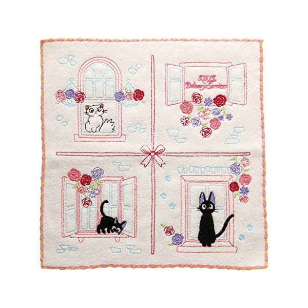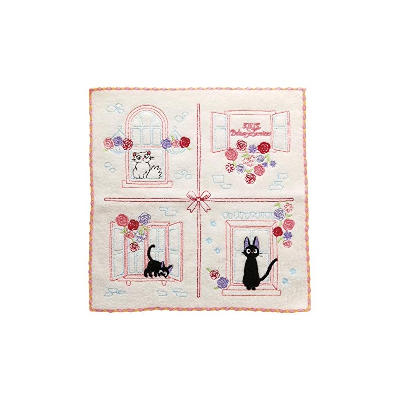 丸眞 ハンドタオル ジブリ 魔女の宅急便 ジジ 25×25cm 窓辺でのんびり 全面刺繍 1005024700