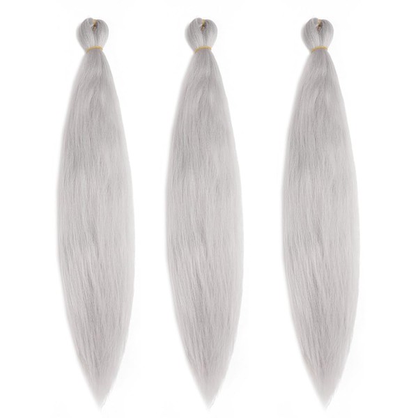 26 Inch Pre Stretched Braiding Hair High Temperature Braids Hair Extensions Hot Water Setting for Crochet Box Braids Light Gray(A39)