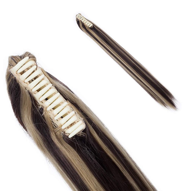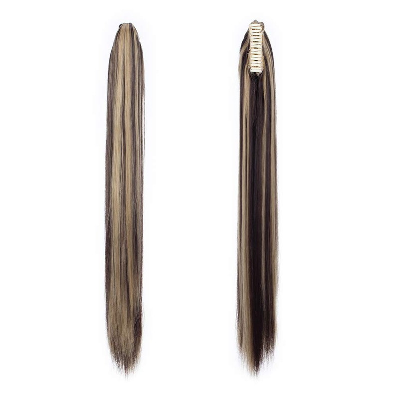 26" Long Claw Ponytail Hair Extension Clip in on Ponytail with a Jaw Claw Ombre Synthetic Hair Natural Straight Cute Hairpiece Dark Brown mix Ash Blonde