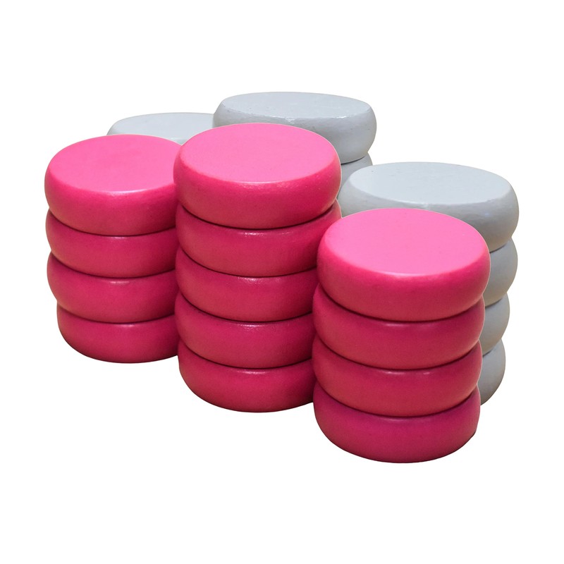 - Includes: A full set (for 2 players) of 26 pink and white large crokinole discs that meet tournament standards (2 extra in the set in case you lose one. Please Note: The discs are flat on both sides which is tournament standard