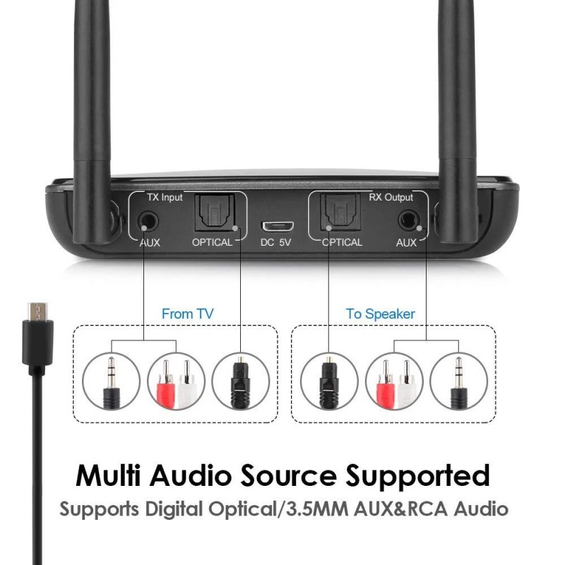 262ft Long Range 5.0BT Audio Transmitter Receiver TV PC Car NFC Cordless Adapter