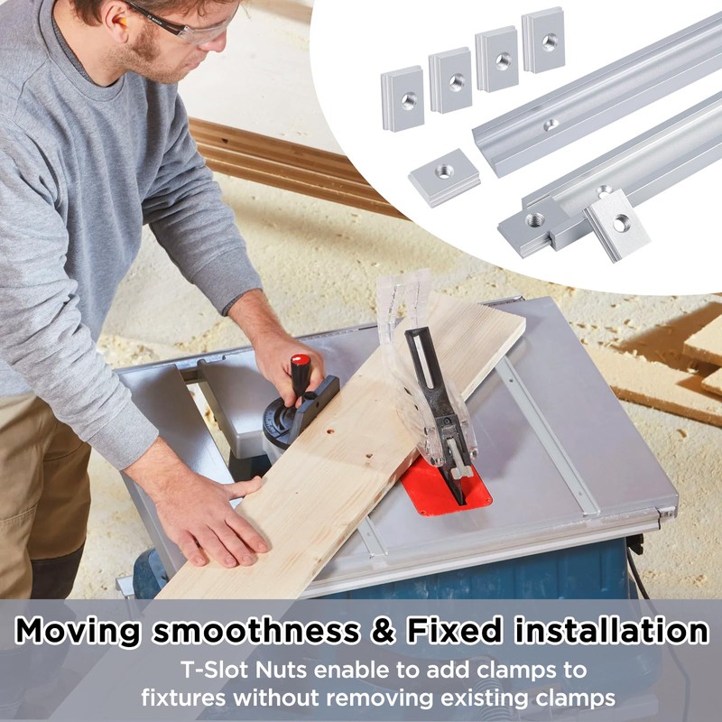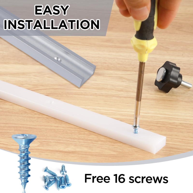 - Value Table Saw Sled Kit: The package includes 2 Aluminum T-Tracks, 2 UHMW Miter Bars, 2 M6 and M8 T-Tracks, 2 Knobs and Bolts, and 16 Screws. Compatible with most standard table saw slots for versatile use