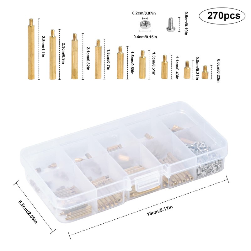 - 【Easy to Carry】Hex brass spacer is equipped with a plastic storage box, it's convenient for you to store these accessories, and it's also easy to carry these small parts anywhere.