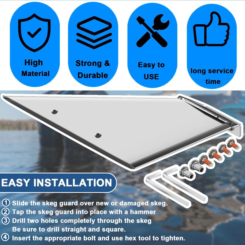 - Easy Installation:Comes with Skeg Guard, Male & Female Stainless Locking Screws & Allen Wrench.Easy to install.Slide the skeg sheath onto the new or damaged tail fin, drill two holes in it, and tighten and secure the skeg sheath into place with an Allen wrench