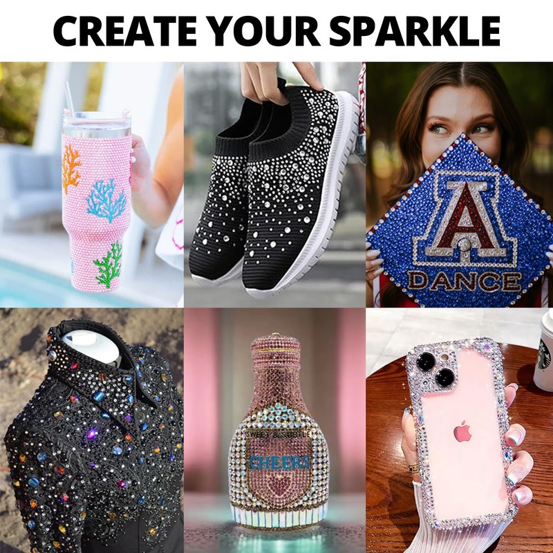- A Must-have for All - Who doesn't like bling? This bedazzling kit is ideal for anyone who wants to turn ordinary items into something extraordinary. Either it is for crafting, clothes, costume, shoes, lipstick tubes, cosmetic containers, hairpins, book covers, greeting cards, earphones, headphones, sunglasses, wine glasses, bottles, tumblers, grad caps, helmets, festival ornaments, decorations, beauty accessories, nail arts, or party activities, DIY sessions, even gifting someone you care, this kit will surve the purpose perfectly