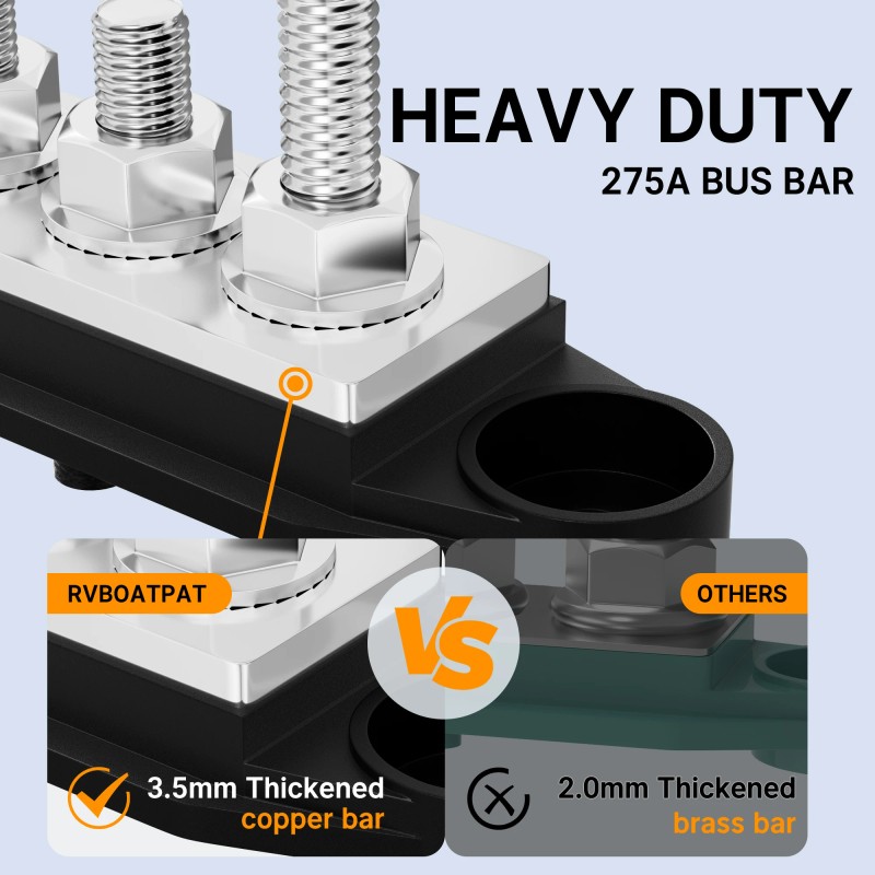 * 【Unique Design】The special fixing method of marine bus bar and base can withstand large torque, and the copper bar and base will not be easily separated.