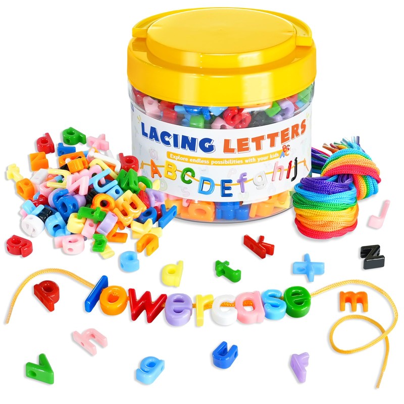 - Ideal Educational Gift - Packed in a cute, handled container, these lacing letters beads and laces make a thoughtful and practical gift for birthdays, holidays, back-to-school, or classroom surprises. Great for home learning, group play, or on-the-go fun!