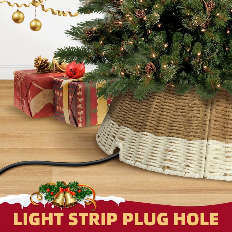 - No More Mess: Say goodbye to the mess left by traditional Christmas tree skirts, cover the unsightly tree trunks. The woven tree collar is fixed by a metal frame, not easy to deform or collapse, help you keep it perfect during the holiday display, and there are pre-fabricated opening for tidy cord management.