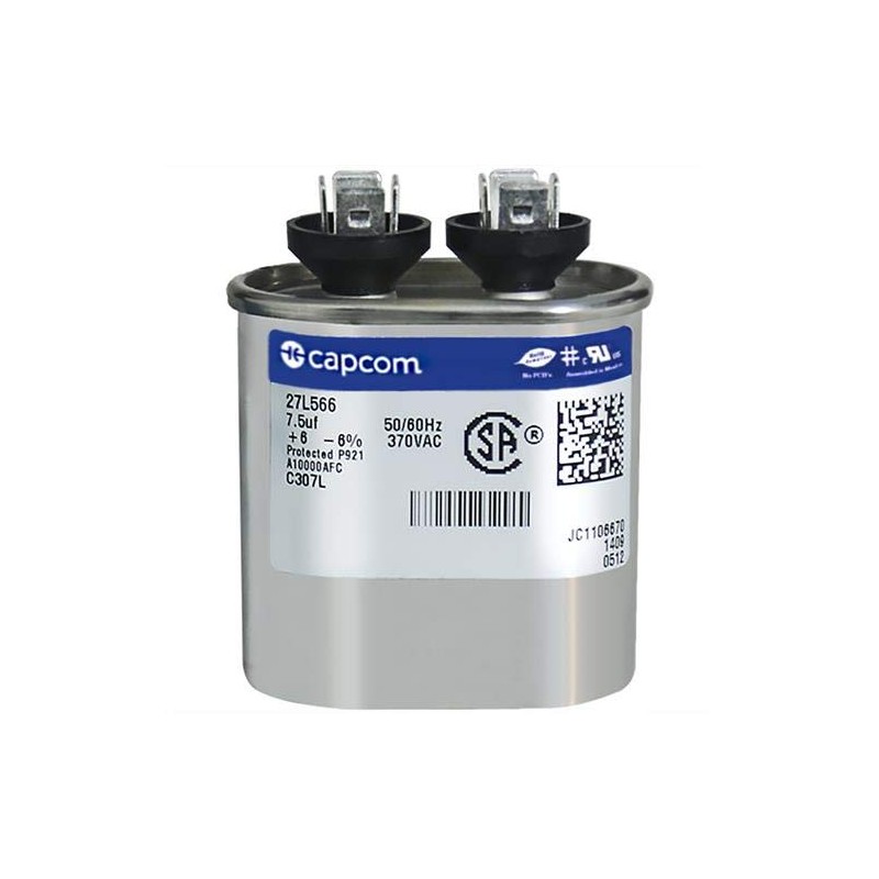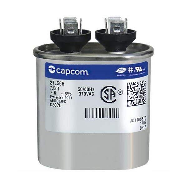 27L566 7.5 uf MFD 370 Volt VAC - Replacement Oval Run Capacitor by CAPCOM