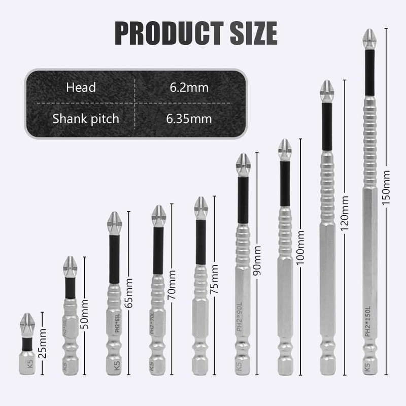 - Universal Size Suits: 9 professional lengths (25/50/65/70/75/90/100/120/150mm) with PH2 tips, stored in nylon case with quick-access bit rail