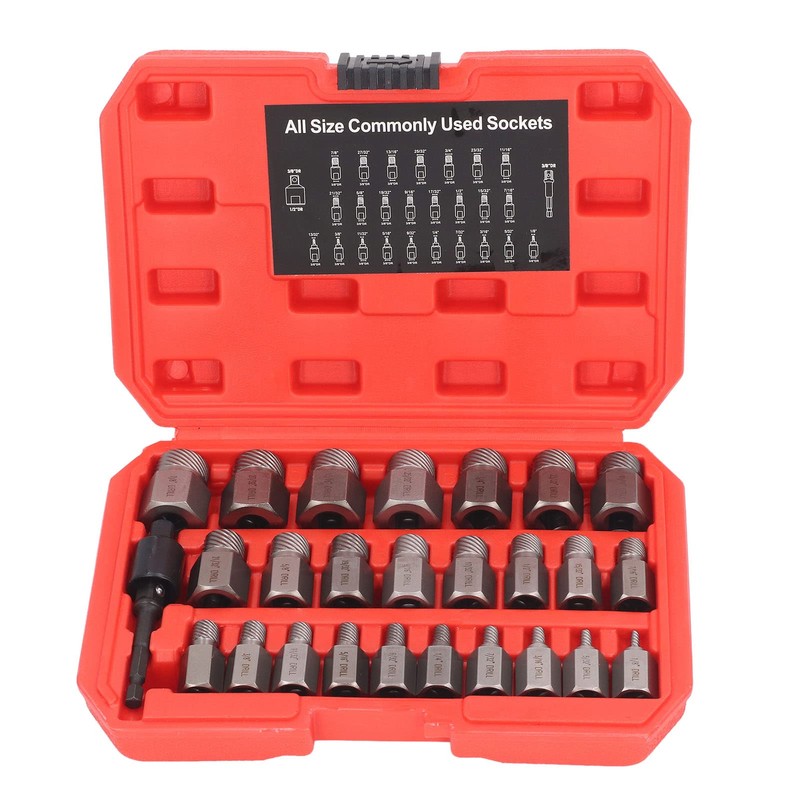 27Pcs Screw Extractor Set, Hex Head Multi Spline Screw Remover Set for Broken Rusty Screw, Left Hand Drill Bit Set Easy Out Bolt Extractor Set for Remove Stripped Screws