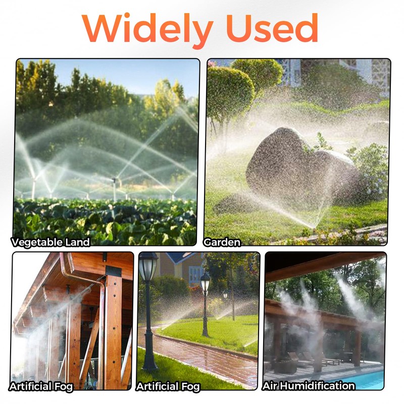 - 【Wide Used】These adjustable spray nozzles with drip irrigation joints can be connected to most 3/8-inch PU pipes, and are used in agricultural production, lawn, home gardening, terrace, roof cooling, balcony cooling, outdoor plant garden terrace greenhouse cooling spray systems. This spray system can keep you cool and refreshing, so as to enhance your outdoor experience. Even in hot weather, you can fully enjoy the outdoor space.