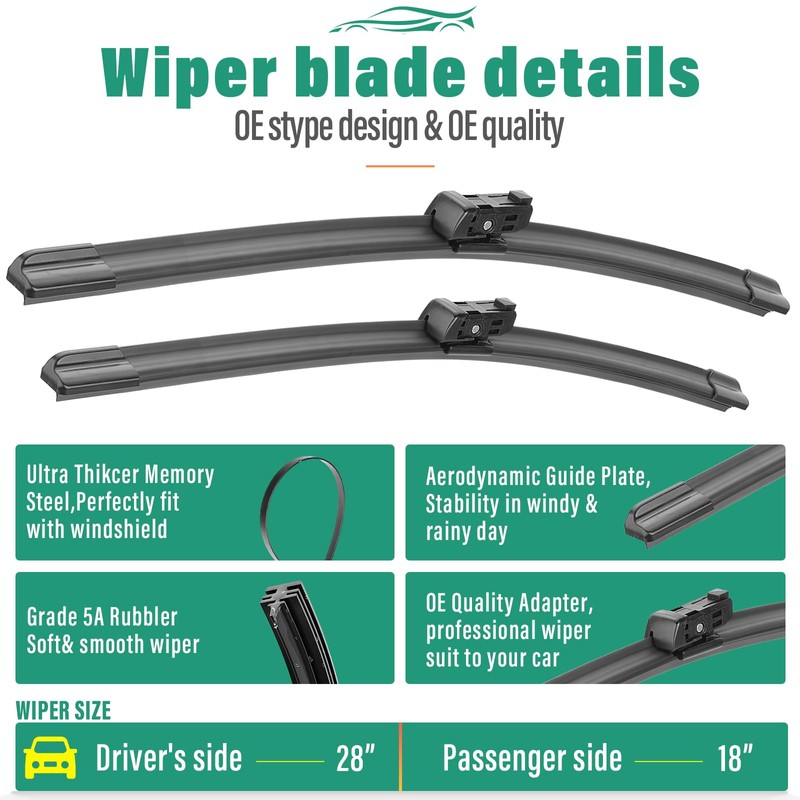 - [More Quiet wipers]: Precision engineering for optimal contact and even pressure distribution ,aerodynamic design reduces wind lift and noise.
