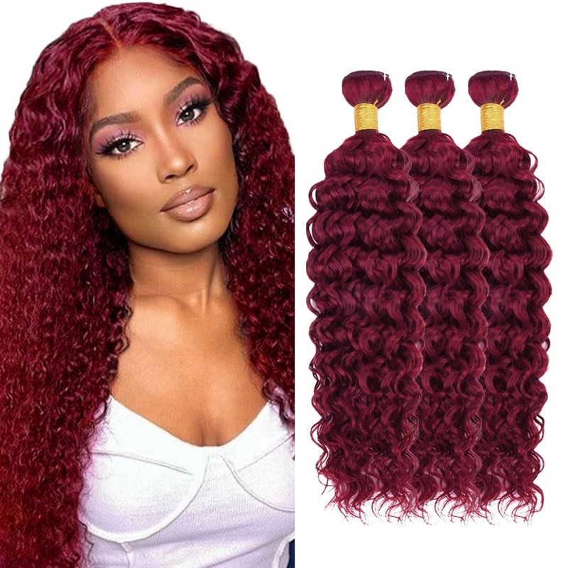 - 【Burgundy Bundle Material】:Unprocessed Brazilian Virgin Human Hair, 8A Burgundy Water Wave Human Hair Bundle, Natural Health.