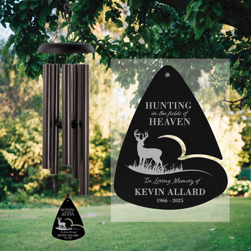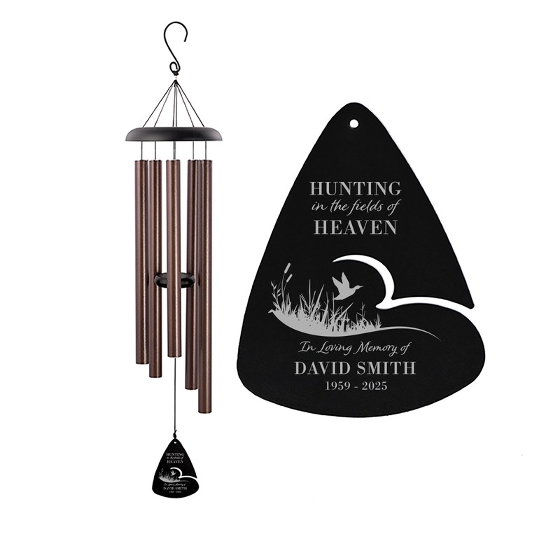 - Personalizable; This rembrance gift for a beloved hunter is laser engraved with the name and years of lift of your loved one; The windchime is further customizable to your style space and decor with the available 3 sizes and 3 colors as well as a design option for a deer hunter or a duck hunter